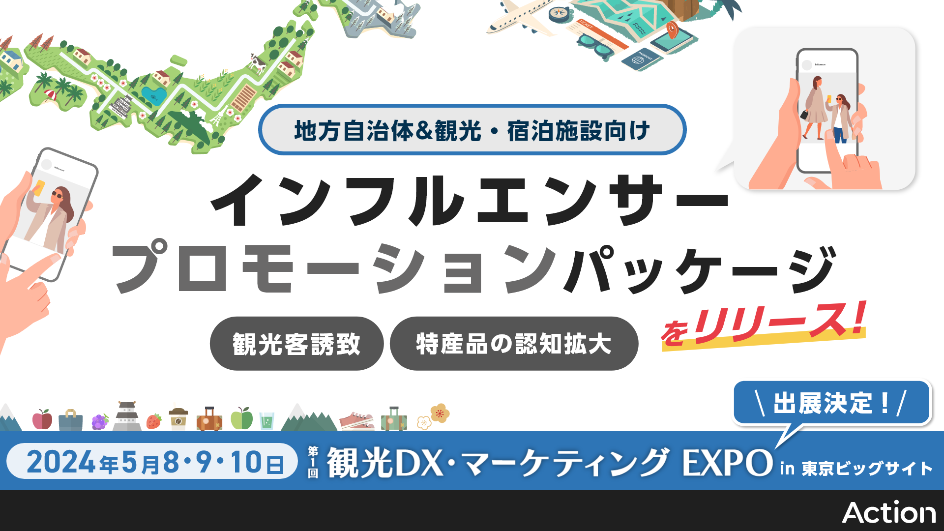 インフルエンサープラットフォーム「Action」、地方自治体や観光・宿泊施設向けの観光客誘致や特産品の認知拡大を目的としたインフルエンサープロモーションパッケージの提供を開始