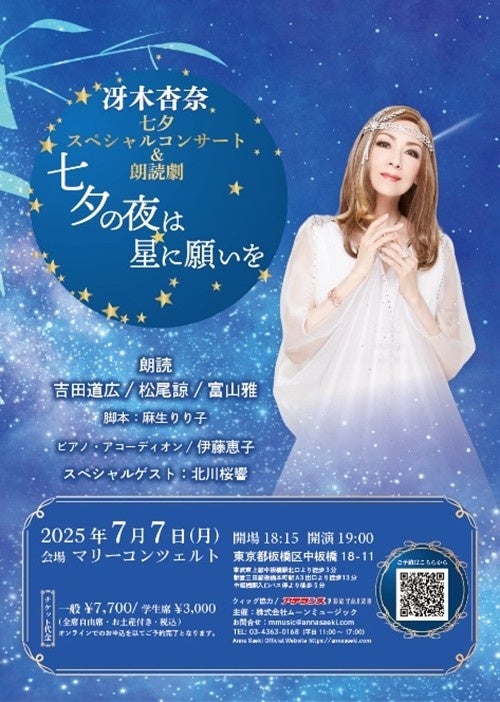 本公演は、星にまつわる歌、ポップス、クラシックなど七夕だからこそお贈りできる一夜限りのスペシャルコンサート&朗読劇となっています。ぜひ会場でお楽しみください。