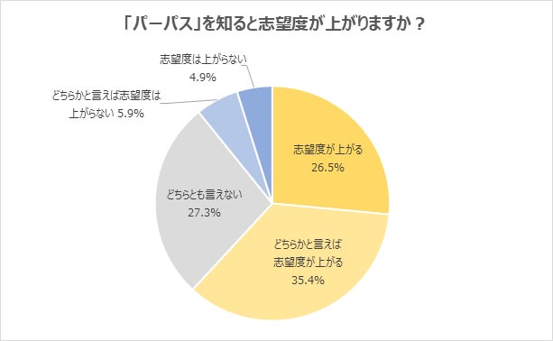「パーパス」を知ると「志望度が上がる」と回答した学生が6割を超える。「ただ単にお金を稼ぎたいわけではない」の声。約4割は、自身の「パーパス」も意識/2024年卒対象アンケート