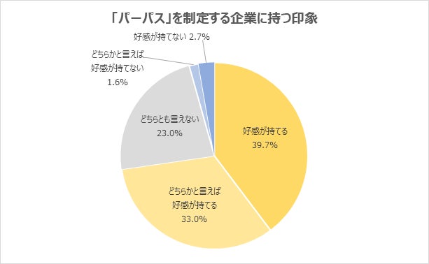(1)「パーパス」を制定する企業は、「好感が持てる」と回答した学生が7割を超える