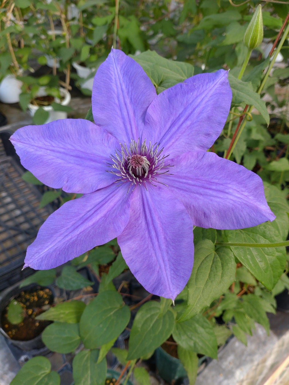 長い間一般流通しなかった幻のクレマチス。整った花形と存在感のある青紫色。