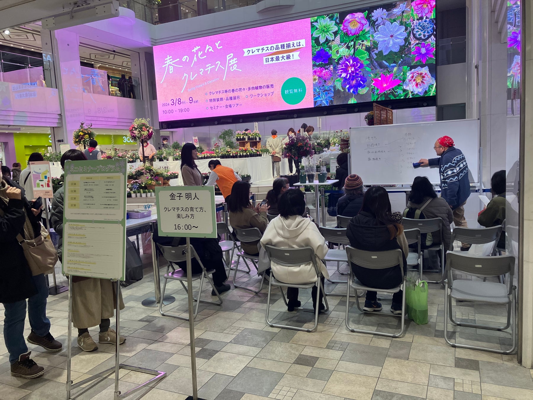 会場内ではハンギングバスケットマスターによる寄せ植えの実演販売コーナーや、リビングや玄関の壁・ドアなどに飾るインテリアアイテムを作れるワークショップ、クレマチスの更なる魅力を発見できる各種セミナーなども開催。