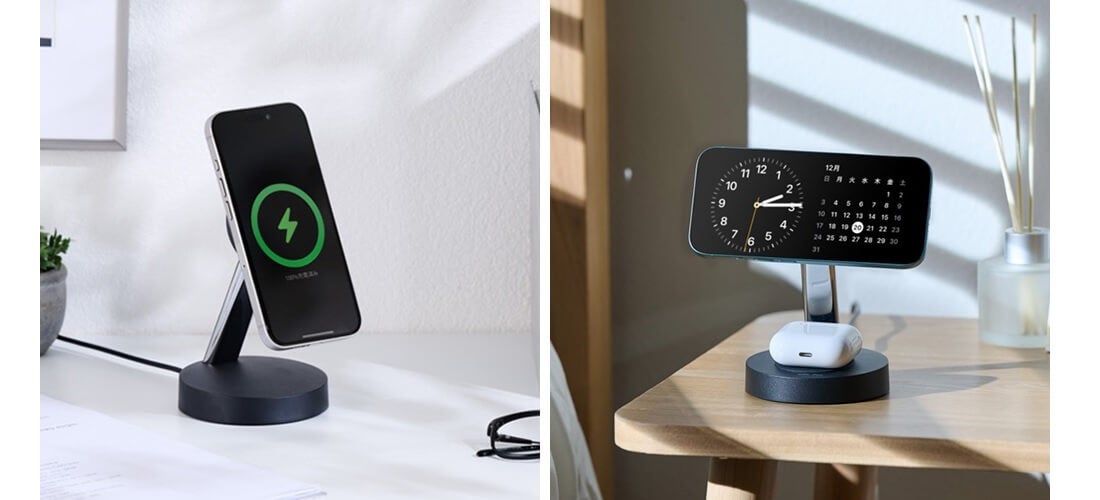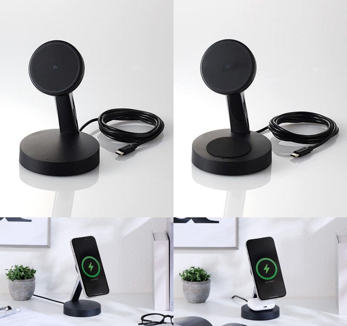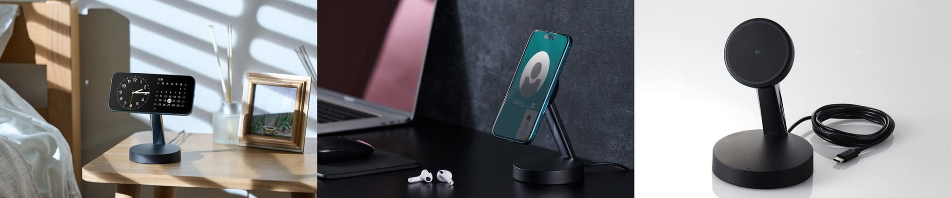 操作しながら充電できる!マグネットで固定可能なQi2認証ワイヤレス充電スタンド
