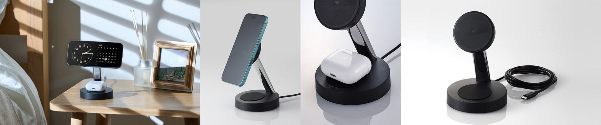 ピタッとくっつけて、スマートフォンの操作をしながら高速充電!マグネットで充電位置もぴったり、ケーブル一体型のQi2認証ワイヤレス充電スタンドを新発売
