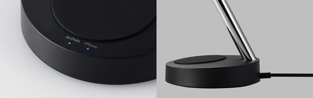 スマートフォン充電専用のシングルタイプと、台座部でAirPodsなどを置いて同時に充電できる2in1タイプをご用意しています。