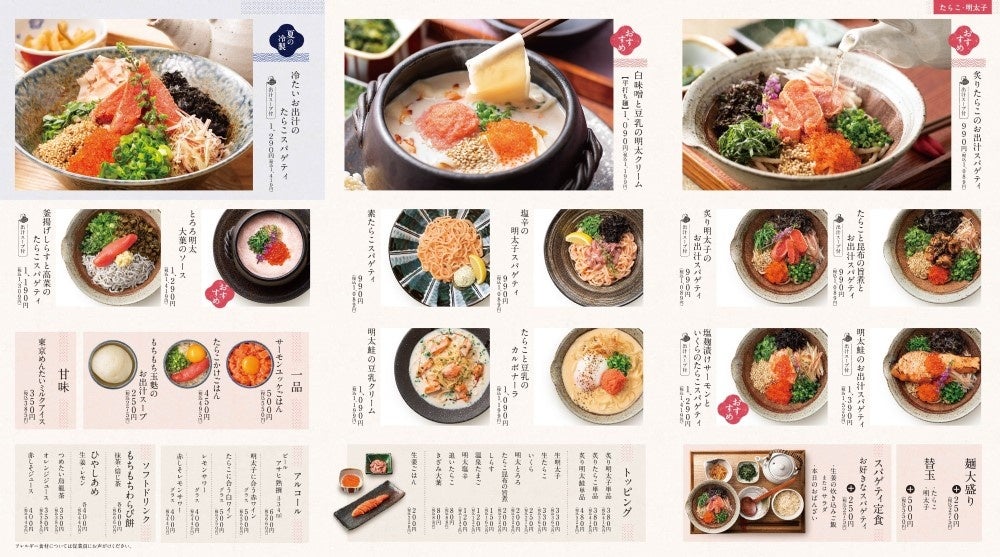 はじめて出逢う13種類の進化系たらこスパゲティを堪能できる、たらこスパゲティ専門店「東京たらこスパゲティ」で4人に1人が選ぶ夏の風物詩「冷製お出汁スパゲティシリーズ」第2弾として「冷たいお出汁のたらこスパゲティ」を2024年7月10日(水)より期間限定で販売を開始いたします。