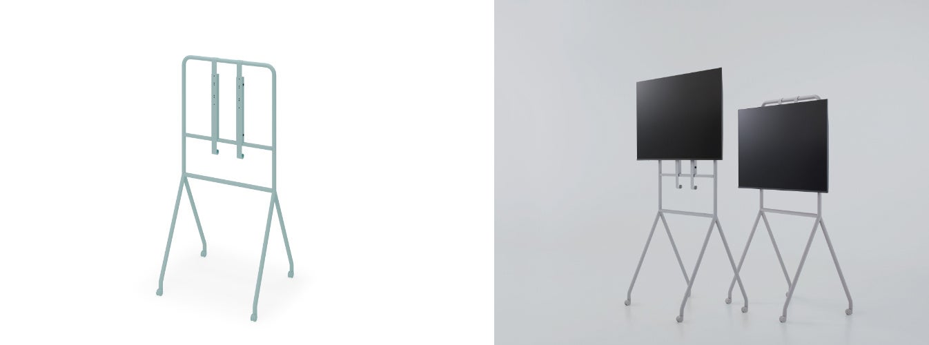 メーカー希望小売価格(消費税抜):Any Chair Stack Stool 39,000円、ホワイトボード118,800円、ディスプレイスタンド 74,800円、スクリーン 82,500円