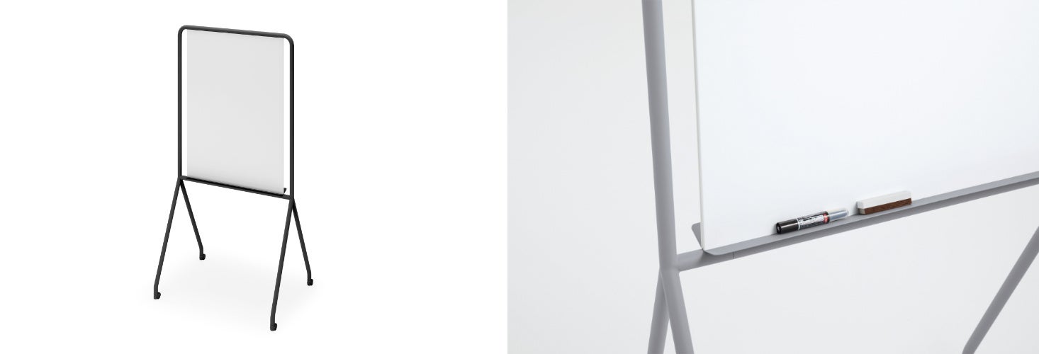 軽量で動かしやすいホワイトボード。シンプルな形状のマーカートレーを両面に標準装備し、マーカーにアクセスしやすくしました。また、フレーム部分におさめることで動かす際にマーカーが落ちるストレスを軽減しました。