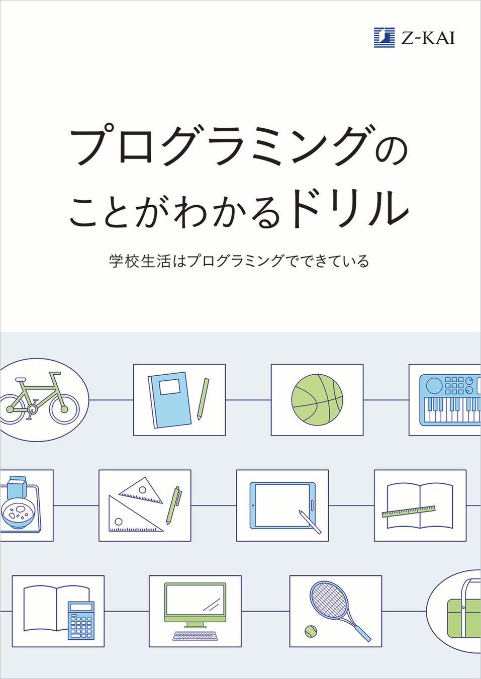お子さまが楽しみながら、日常生活の中で無意識のうちにプログラミングに触れていることに気がつき、プログラミングとはどのようなものなのかを体感できるドリル形式の冊子です。