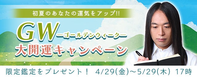 そこで当サイトでは、素晴らしい運気が訪れることを願って「GW大開運キャンペーン」を開催します。対象鑑定を占っていただいた方には、キャンペーン限定の鑑定をプレゼント!
