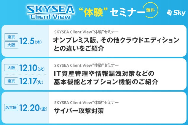 「SKYSEA Client View」 12月開催ハンズオンセミナー(東京・大阪・名古屋)