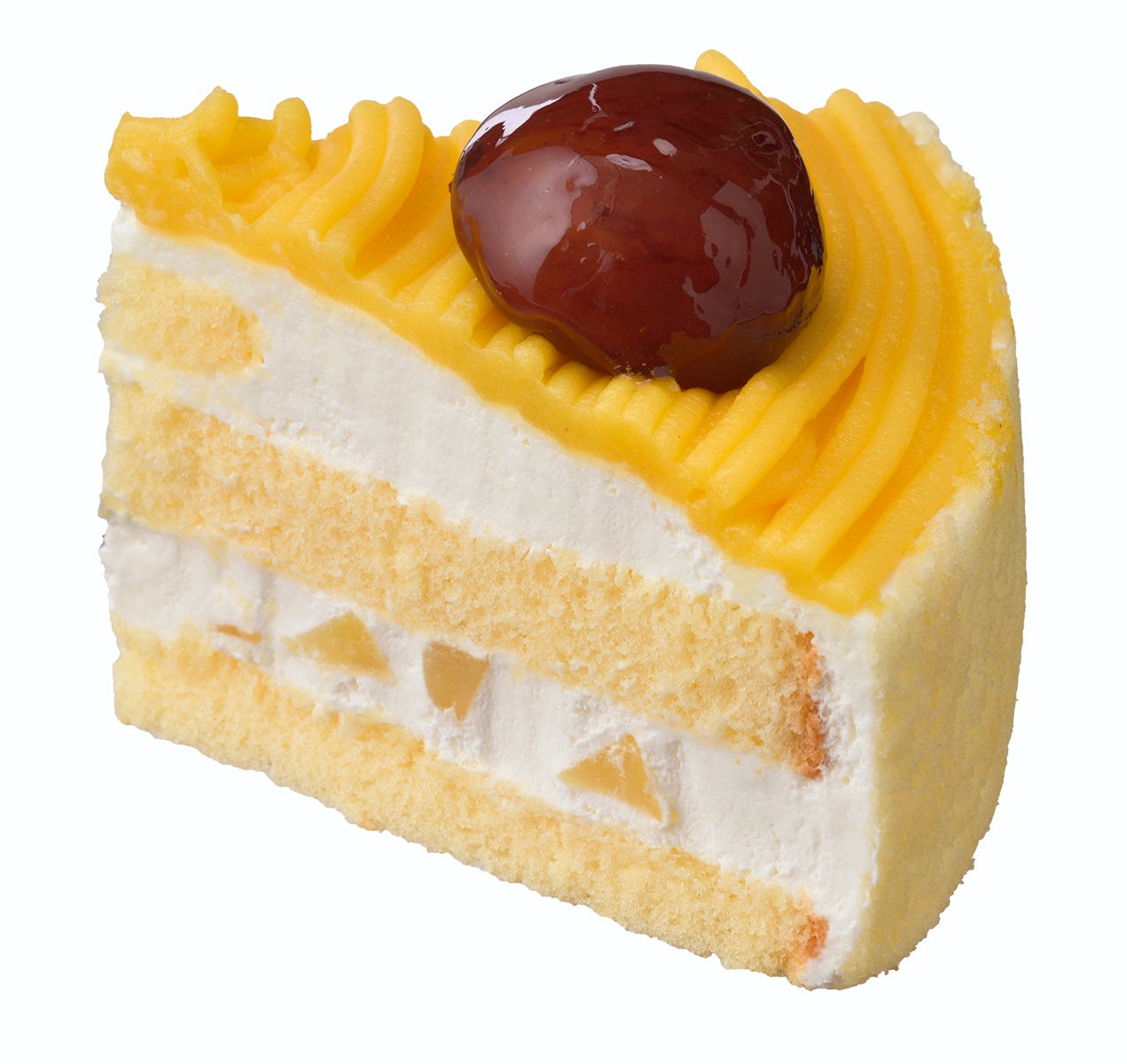 つぶつぶマロン入りのホイップクリームとスポンジを重ねて、こっくりとした甘みのマロンあんを絞りました。