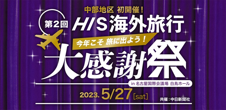 株式会社エイチ・アイ・エス(本社:東京都港区 以下、HIS)は、今年こそ旅行を検討されているお客様に向けて、「第2回HIS海外旅行大感謝祭」を2023年5月27日(土)に名古屋国際会議場にて開催いたします。