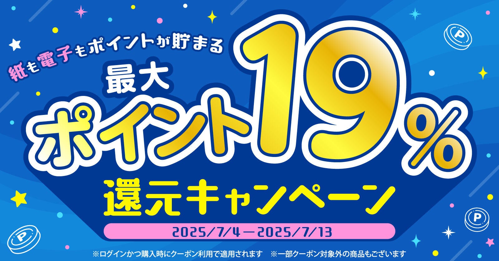 連日暑い日が続く中、お家で涼しく漫画を楽しんでいただけるよう、通常のポイント還元に加えて4%ポイントを上乗せ還元します。これにより、最大還元率は19%に達し、この夏読みたい漫画や書籍をお得に購入できるチャンスです。