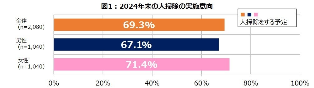 全国20歳以上の男女 計2,080人に聞きました『ダスキン 2024年末 大掃除実施意向調査』
