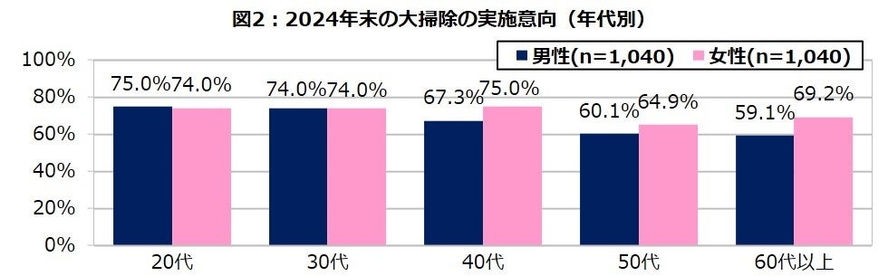 ・2024年末の大掃除は69.3%が実施予定。若年層の方は意向が高い結果に!