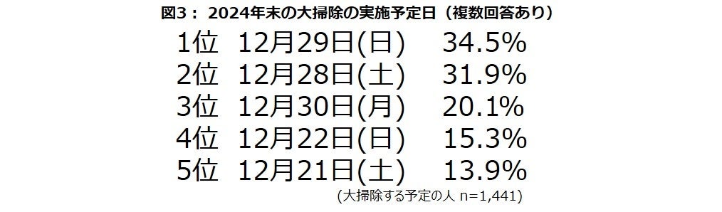 ・大掃除をする日は「12月29日(日)」が約3割。