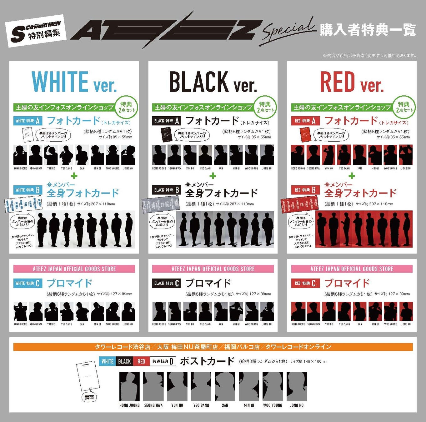 - 『S Cawaii! MEN特別編集 ATEEZ Special』の「WHITE ver.」「BLACK ver.」「RED ver.」をご購入いただいた方に特典を差し上げます!
