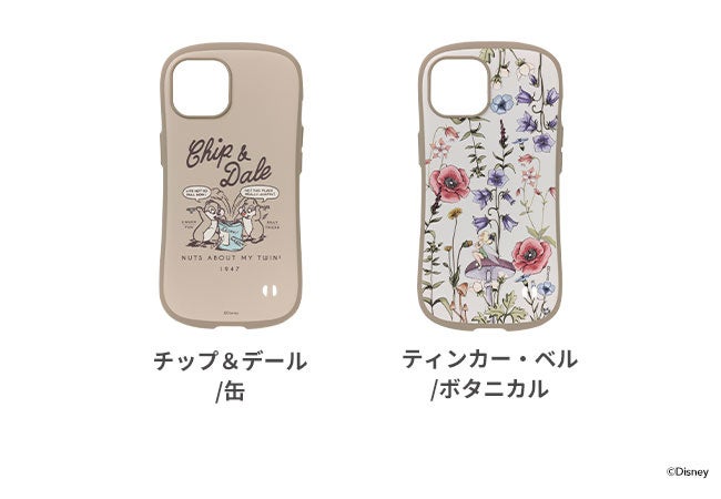 Cafeデザインからは、缶を叩いて遊ぶチップとデールをポスターアート風に描いた「チップ&デール/缶」と、様々な植物に「ティンカー・ベル」がさりげなく描かれた大人可愛い「ティンカー・ベル/ボタニカル」の2種類の新柄をご用意しました。マットな質感とラテカラーが優し気な雰囲気で大人女子のコーディネートにも好相性です。