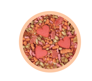 ・おぱんちゅうさぎをイメージした、かわいい“ハートのチップ”入り、ピンク色のふりかけです。