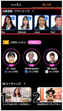 2.「NC×AI」 →「AI英会話 -フリートーク」に並んでいる講師を選択