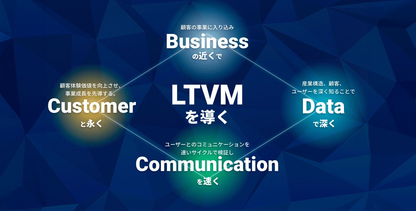 しかし、当社グループにおいては、企業側が得られる利益を示す観点でのLTVではなく、これまで以上にエンドユーザーを理解し、真に顧客に寄り添った支援に注力し、エンドユーザーへの本質的な価値提供に重きを置くことで、短期利益ではなく、顧客企業の永続的な事業成長に貢献するという概念として捉え、その実現を目指す手段として、「LTVM(Life Time Value Marketing)」と名付けた。