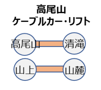 ③高尾山口駅から乗車し、①で乗車した駅にて下車(往復同区間の鉄道利用)