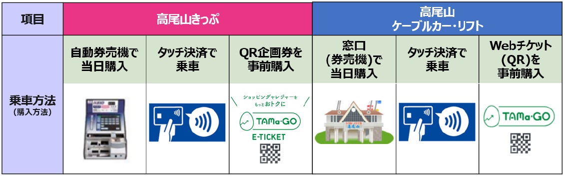 現在、各駅自動券売機で発売している「高尾山きっぷ」を、クレジットカード等やスマートフォンなど様々な手段でご利用いただけるようにすることで、お客さまへの利用動機の促進や沿線の回遊性向上による新たな移動需要の創出を目指します。