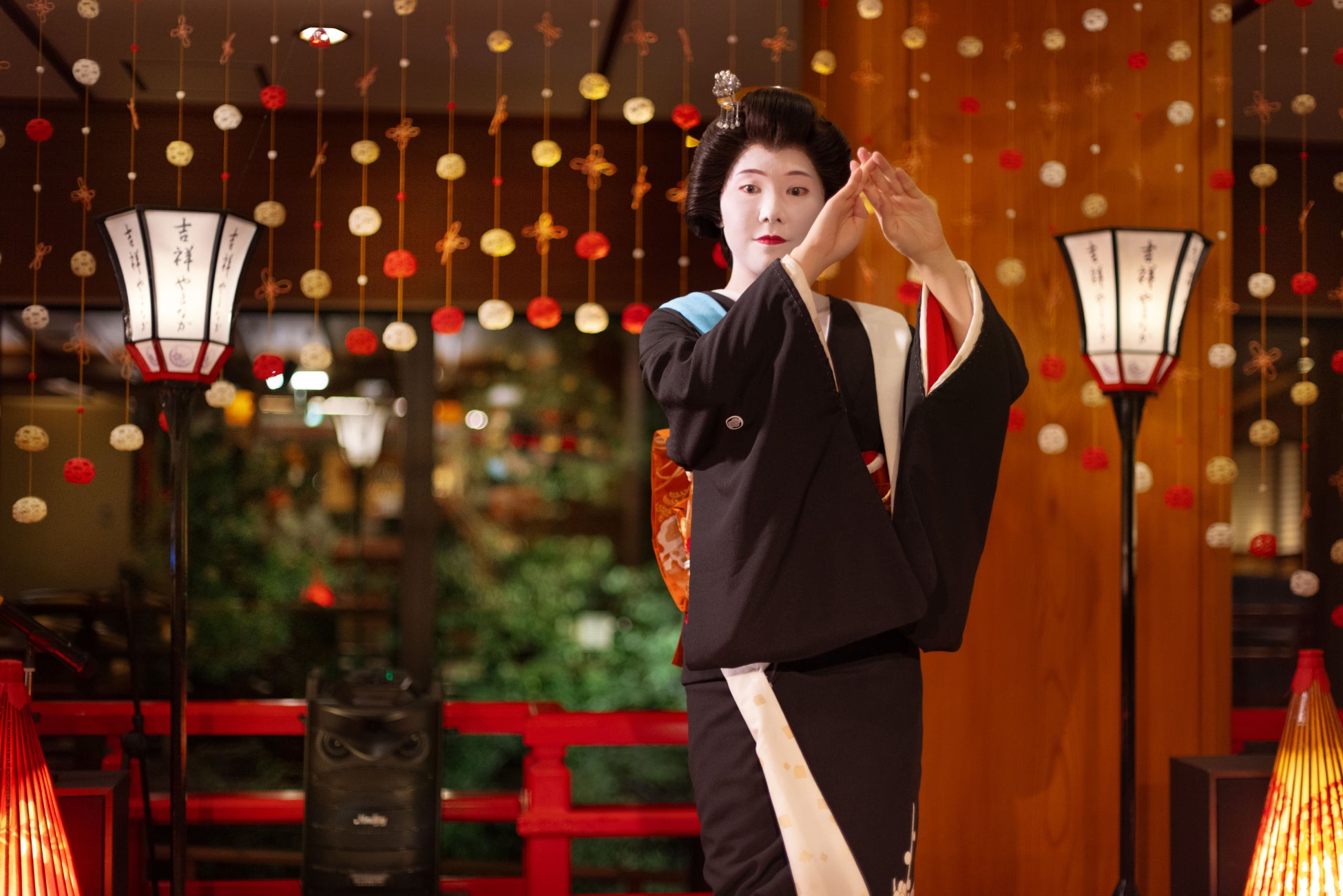 伝統芸能「山中節の夕べ」公演では、芸妓たちが情緒漂う舞唄を毎晩ご披露します。