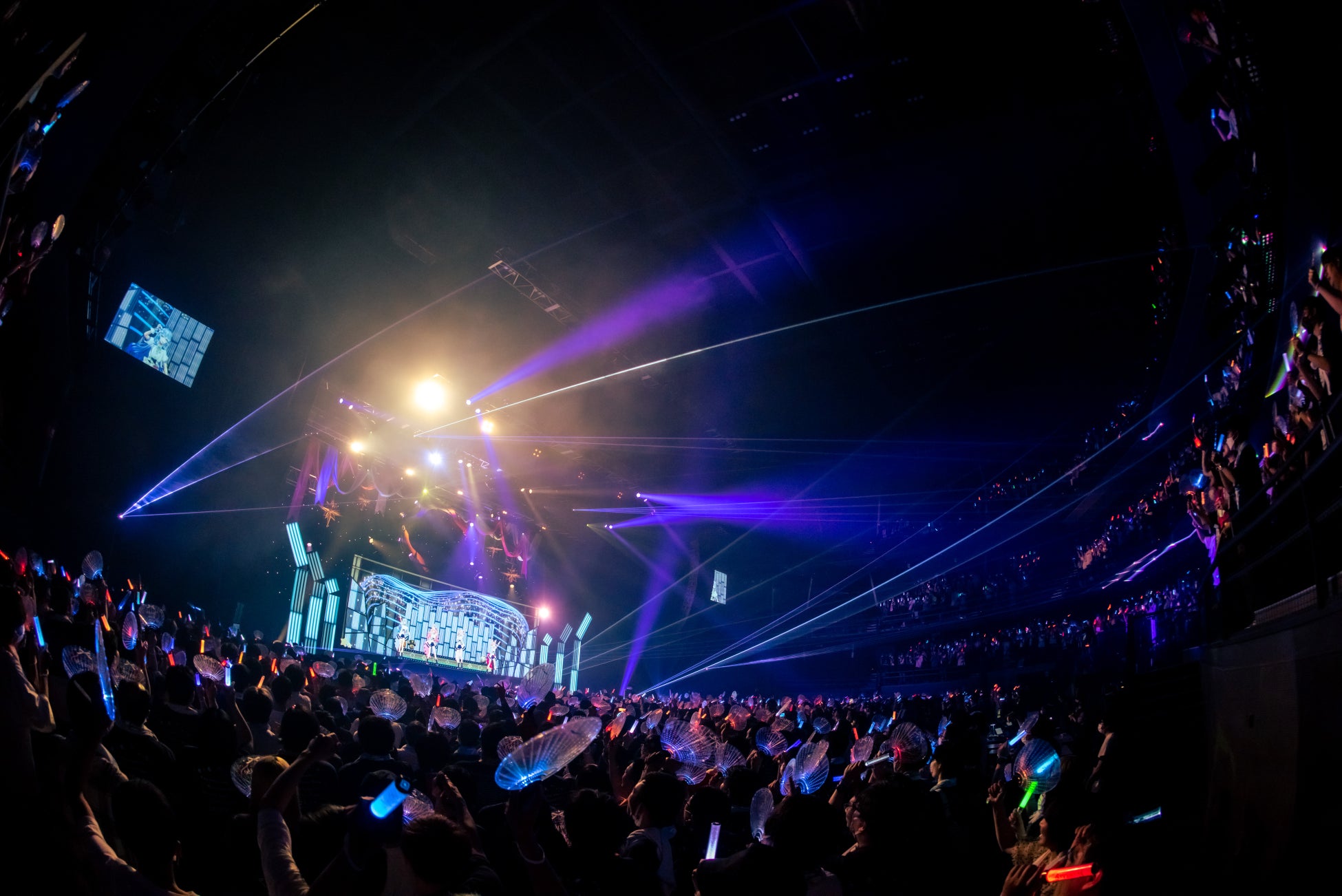 定刻を迎えると、オープニングムービーが始まる。七夕の夜空には天の川と満天の星々。過去のライブ出演映像も含めたメンバー紹介パートでは、各メンバーカラーのペンライトとともに歓声が上がる。