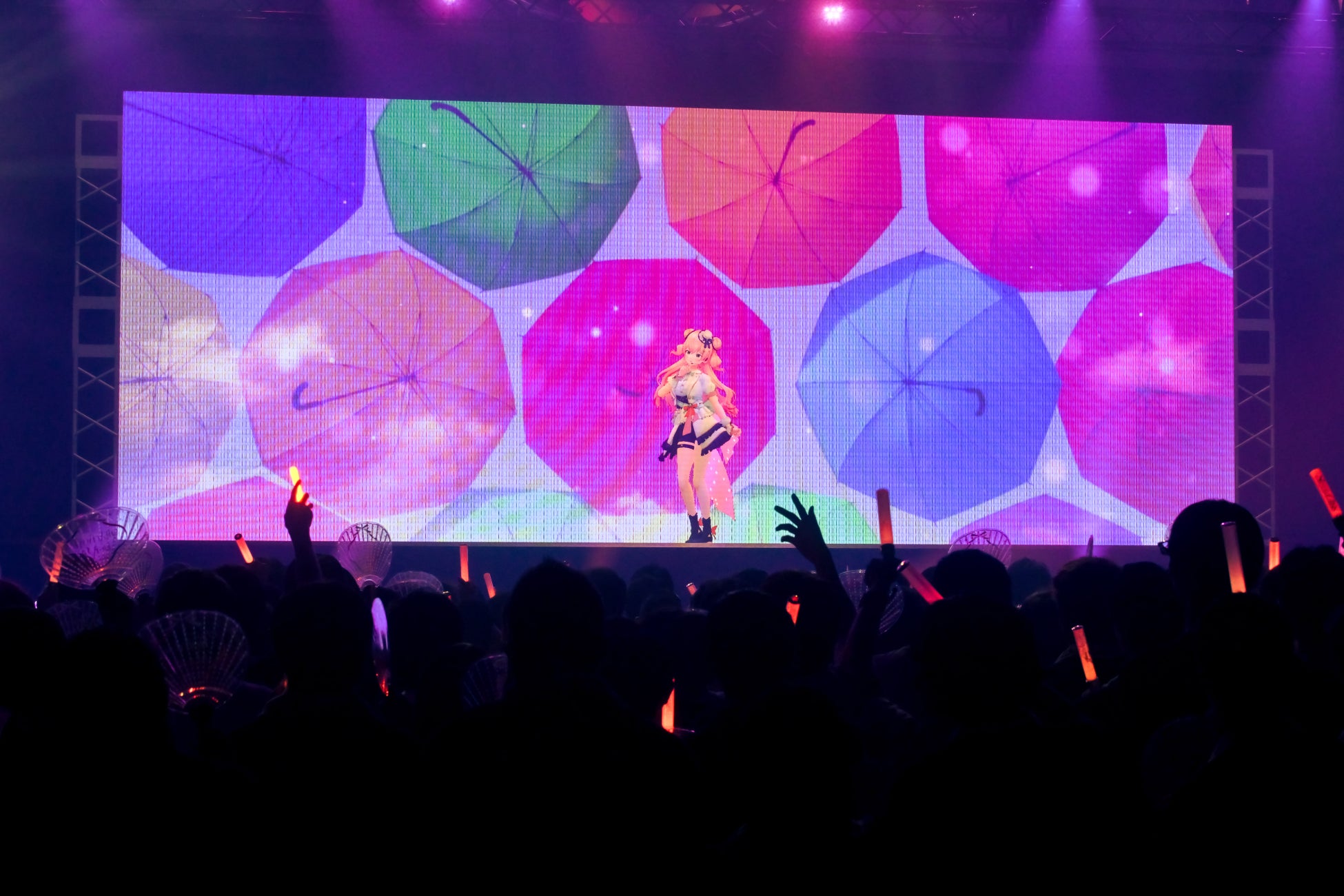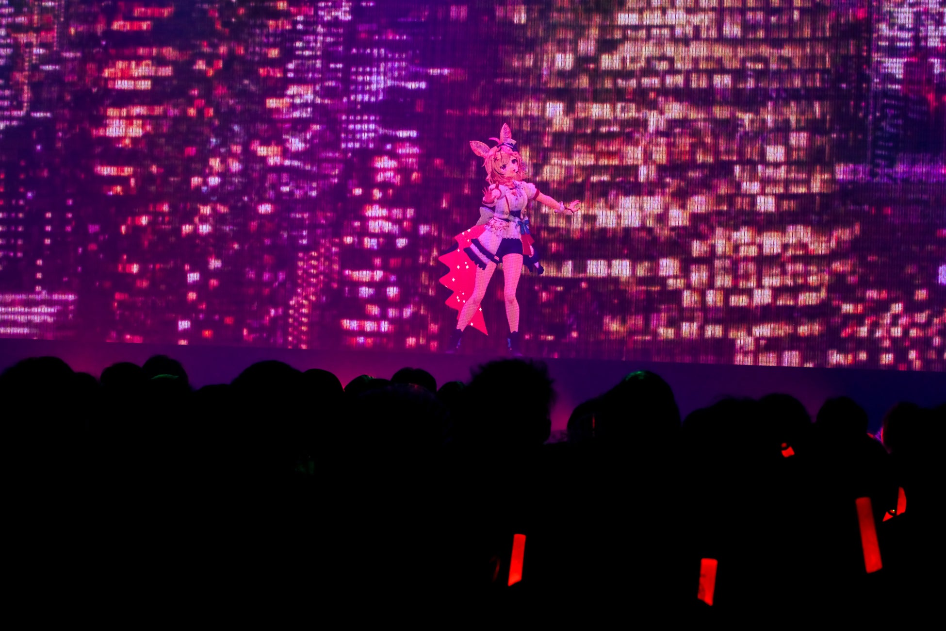 ソロパート最後は、ぼたんの「Lioness' Pride」。白を基調にした映像演出はぼたんの透き通る声によく似合っている。少女のようなあどけないかわいらしさがある歌に反して、眼光と腕の振り上げは力強く、持ち前のエイムで観客の心を撃ちぬいた。