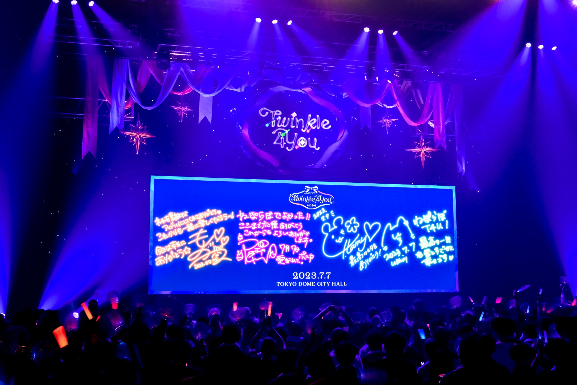本編最後は、公演タイトルを冠した「Twinkle 4 You」。事前に動画でレクチャーされた振付を観客は完璧にこなし、メンバーと会場はひとつになっていく。そしてきっと、配信で見ている画面の向こうの視聴者も。アウトロではシンガロングが響き、ライブロゴがきらめく中、4人はステージを後にした。