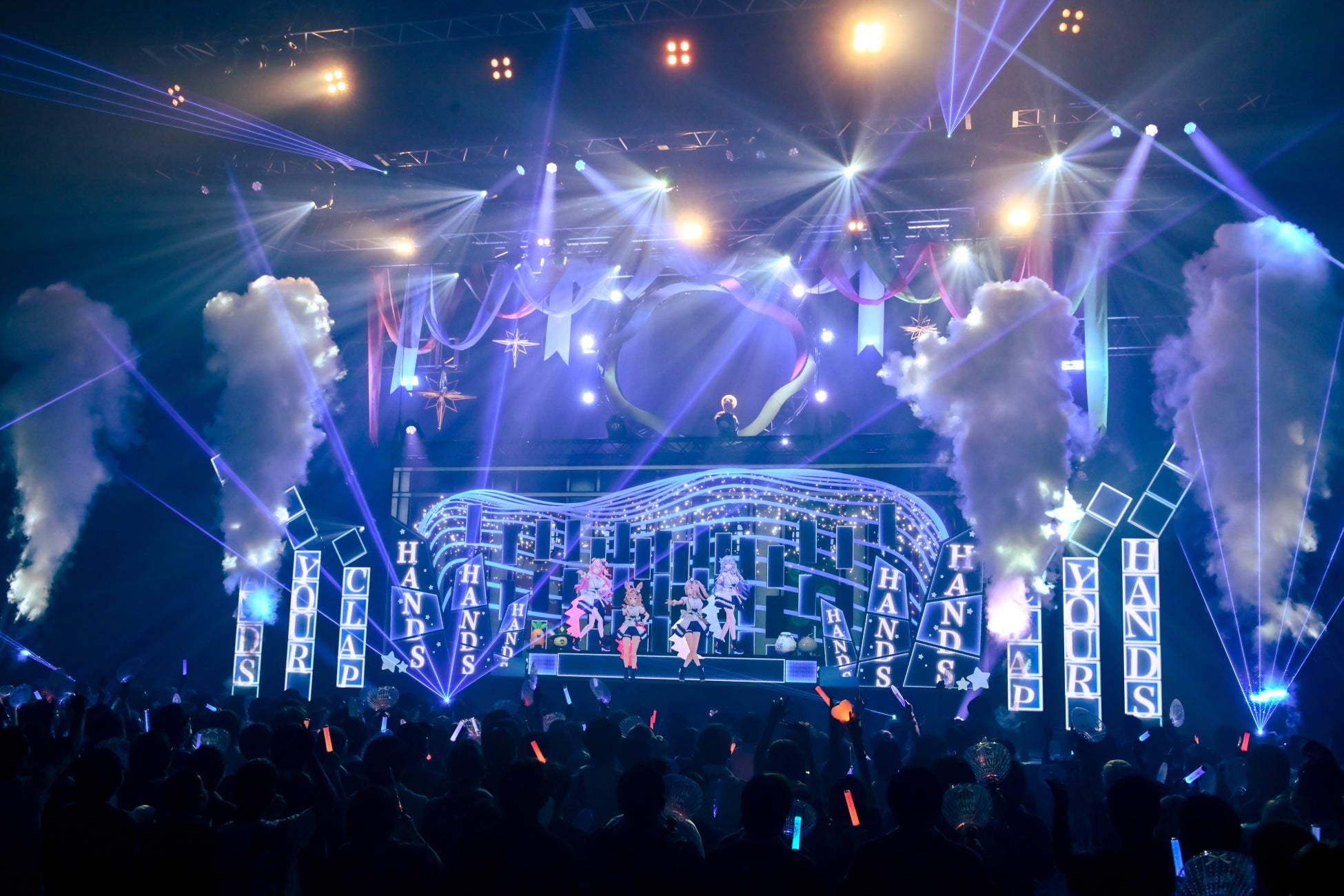 余韻さめやらぬまま、「Candy-Go-Round」へ。原曲はホロライブの別のメンバーが歌っていたが、DJ×ねぽらぼの歌唱によってまた異なる魅力を放つ。衣装が部分的に光る演出もきらびやかで、エモーショナルな気分を煽られる。
