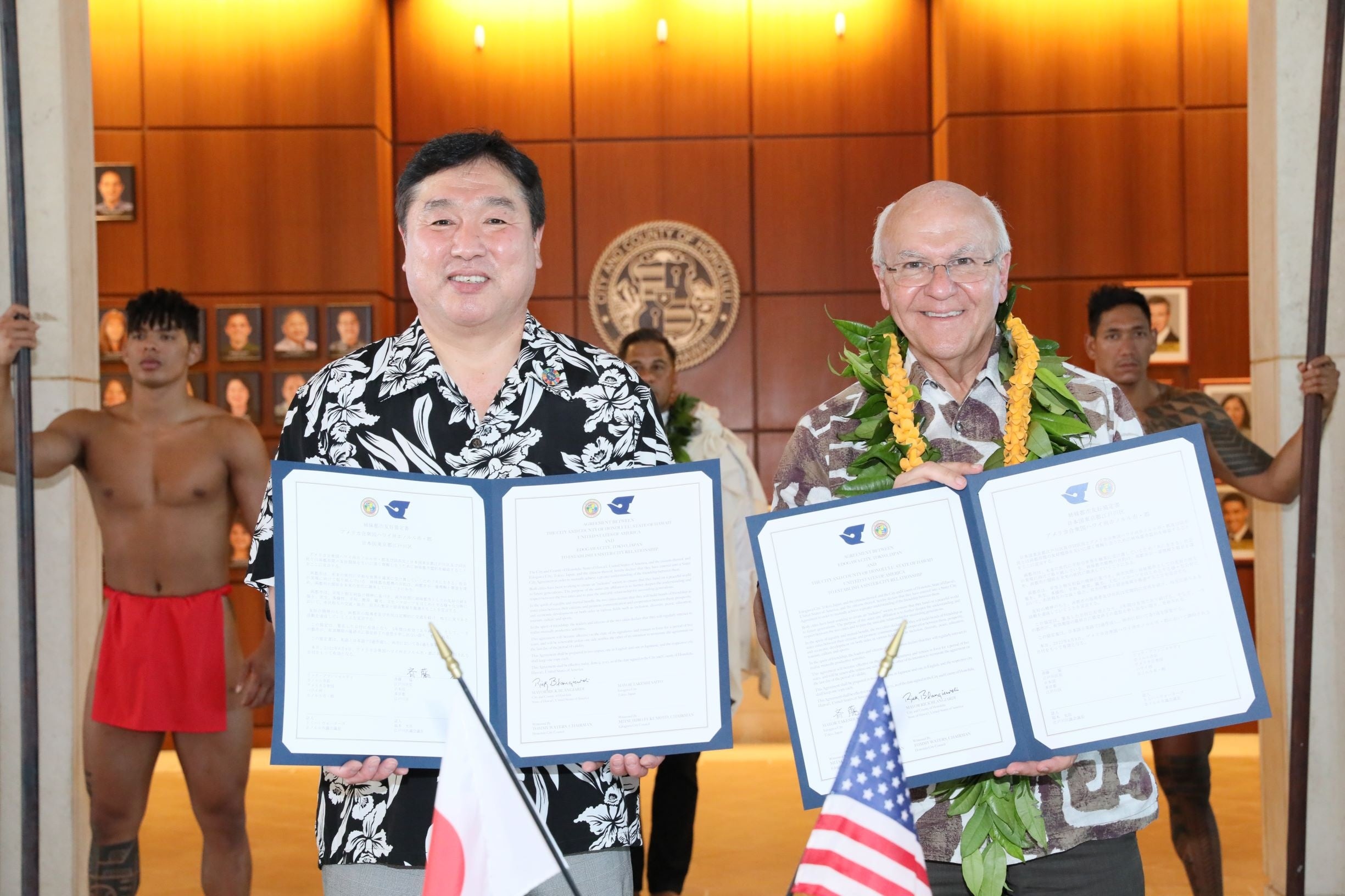 江戸川区は『ともに生きるまち(共生社会)』の実現に向けて、SDGsに積極的に取り組んでいます。『誰一人とり残さない』を理念とするSDGsを達成することは、江戸川区が目指す『ともに生きるまち』を実現することにつながります。江戸川区は2022年9月、長期構想にあたる2100年の江戸川区共生ビジョン、中期計画にあたる2030年の江戸川区SDGsビジョンを区民とともに策定しました。 江戸川区とホノルル市の交流は、2016年にスタートしており、お互いに共生社会の実現とSDGsの達成を目指していること、そしてビーチを持っているという共通点があります。語学、文化、スポーツ等で、江戸川区民のみならず、ホノルル市にもメリットのある交流を促進していくべく、姉妹都市盟約を締結しました。