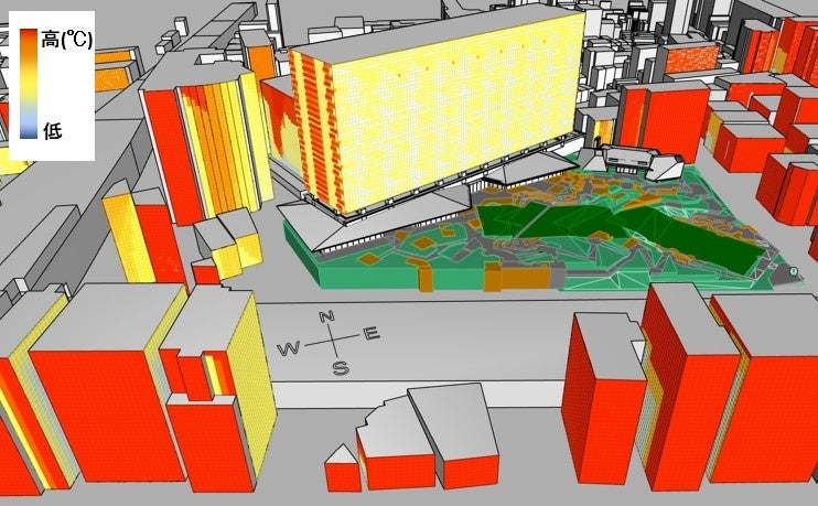 【参考】外装膜に加え、ガーデンエリア「みやぐりん」の緑化がもたらす冷却効果