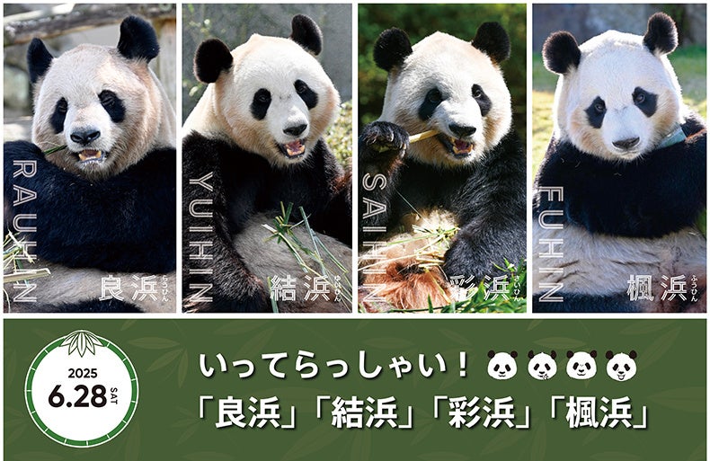 2025年6月末頃に帰国予定とお知らせしておりました、アドベンチャーワールド(和歌山県白浜町)で暮らす4頭のジャイアントパンダ「良浜(らうひん)」「結浜(ゆいひん)」「彩浜(さいひん)」「楓浜(ふうひん)」の中国への帰国日が、6月28日(土)に決定いたしましたのでお知らせいたします。