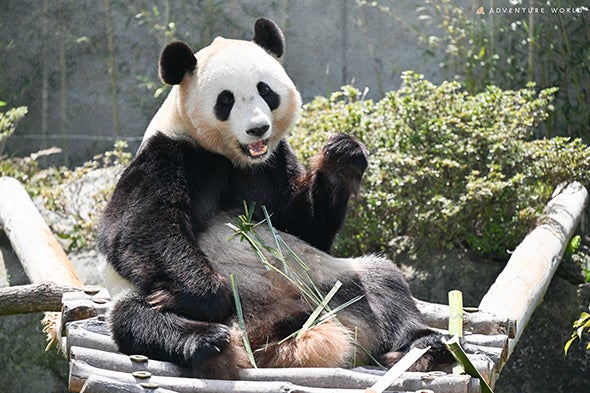 アドベンチャーワールドで初めて誕生したジャイアントパンダです。幼い頃の性格は非常にやんちゃで、運動場のタイヤやボールで遊ぶことが大好きでした。「良浜」は、優しい母親として多くの子どもを育て、⺟親である「梅梅(めいめい)」に負けないくらい⼦育てが上⼿なお⺟さんパンダになりました。