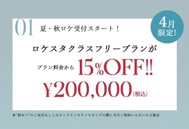 ロケスタクラスフリープラン通常¥244,600が15%オフ価格(¥200,000)でのご案内に。