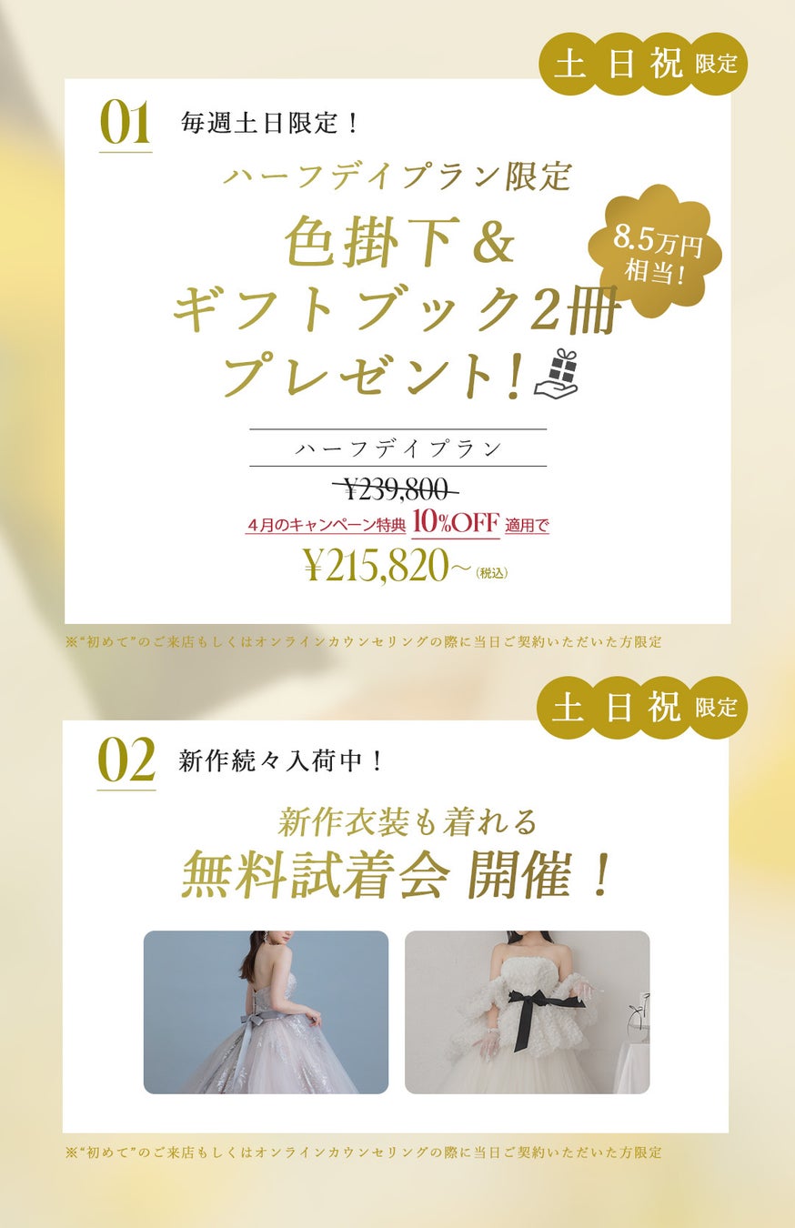 【結婚応援】4月はブライダルの記念写真限定で最大10万円分のプレゼント企画も開催中。