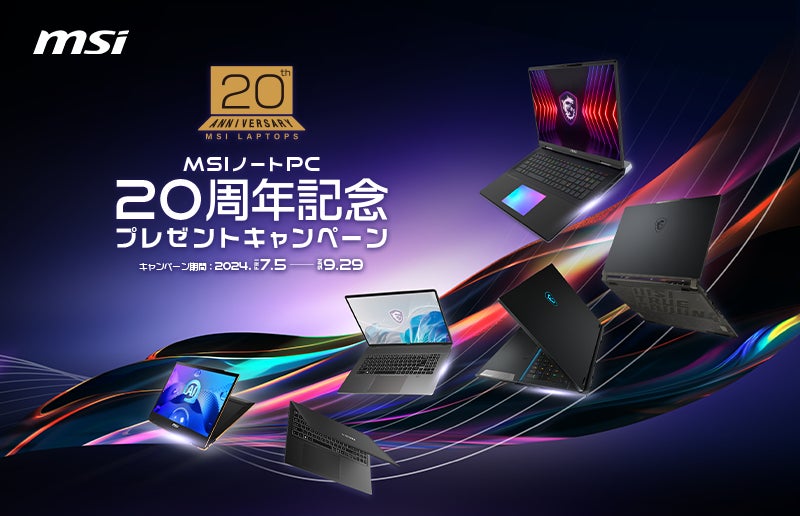 対象のMSIノートPC製品の購入で特典がもらえる、2大キャンペーンを開催 『MSIノートPC 20周年記念 プレゼントキャンペーン』『MSIノートPCレビュー投稿キャンペーン 2024 Second』