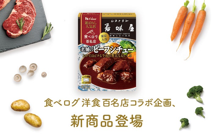 2018年8月より展開している「食べログ 百名店」とハウス食品のコラボ商品「選ばれし人気店」シリーズに、新たにレトルトシチューが登場します。今回は、「洋食 百名店」に3回連続で選出されている「レストラン香味屋」(東京都台東区)の監修による商品が発売されます。全国の食べログユーザーから高い評価を得ている名店のビーフシチューを、ご自宅で手軽にお楽しみください。