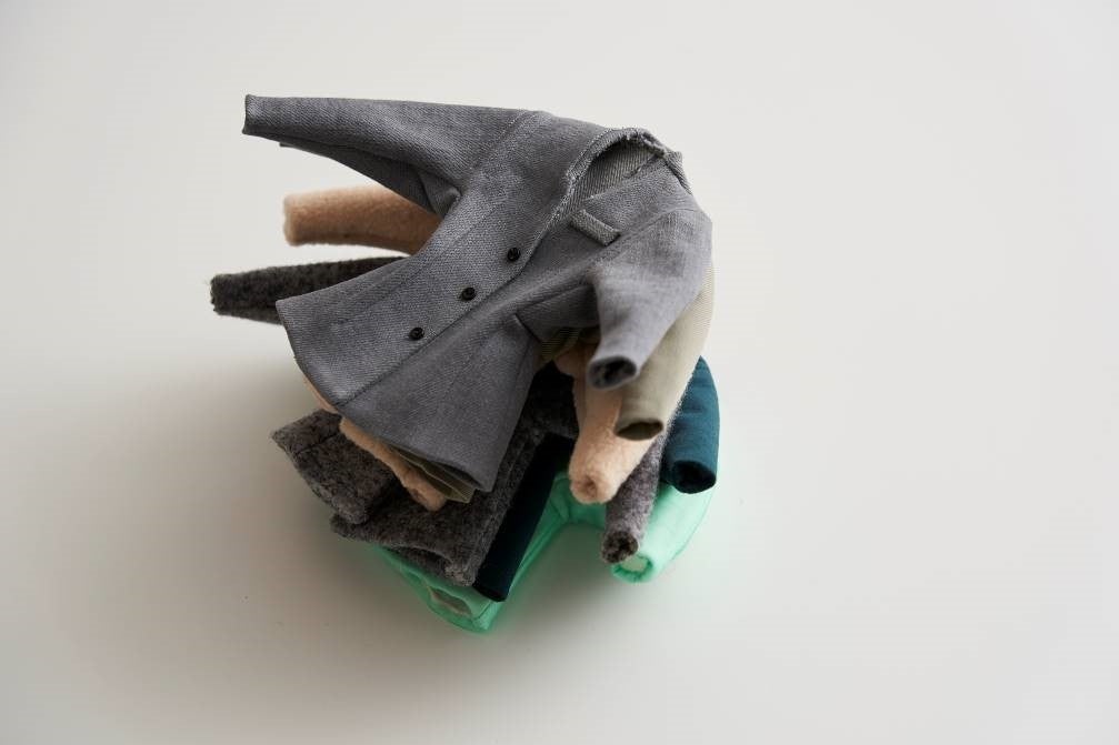 商品センターを訪れて、ほとんどの服がハンガー吊りで管理されていることに驚きました。服そのものの状態もよく、大切に扱われたものが集まっているのだなと感じ、自分が認識しているファッションの世界は氷山の一角なんだということを体感しました。今回の企画では服作りを続ける上で影響を受けた作家によるものを中心にセレクト。選び終わってみて、マテリアルと構造が分かち難く支え合っているデザインに惹かれてしまうのだなと感じます。