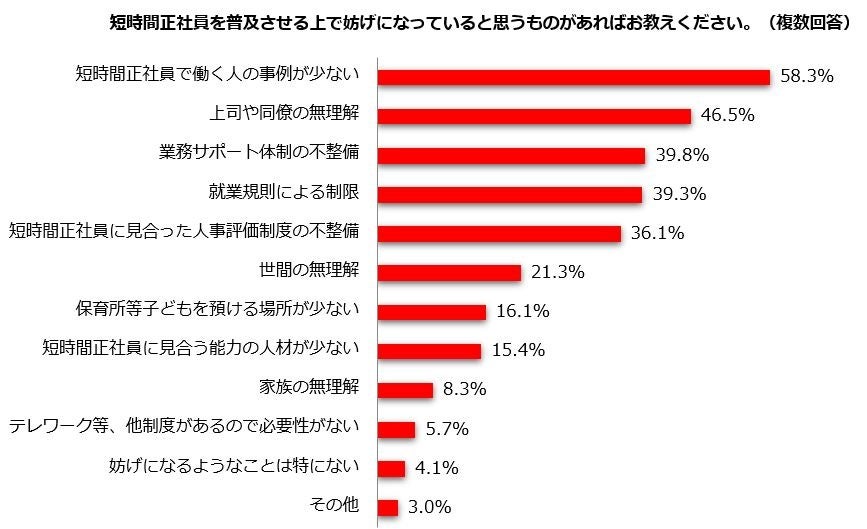 4.短時間正社員を普及させる上での妨げ「働く人の事例が少ない」58.3%