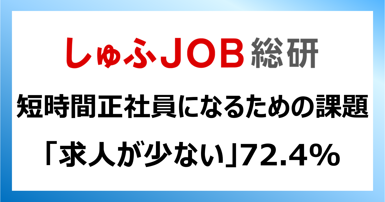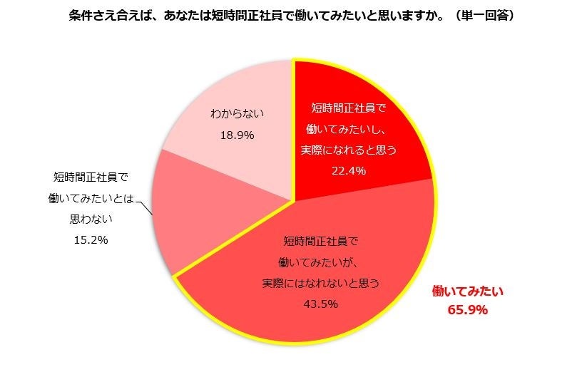 「短時間正社員で働いてみたい」65.9%/短時間正社員普及の妨げ「事例少ない」58.3% ~しゅふJOB総研調査~