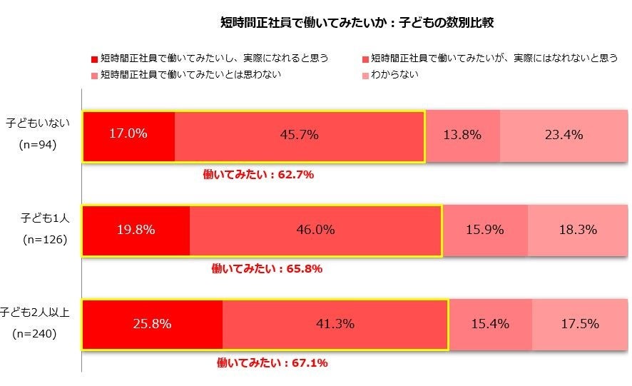 2.短時間正社員で「働いてみたい」65.9%/子どもの数別比較