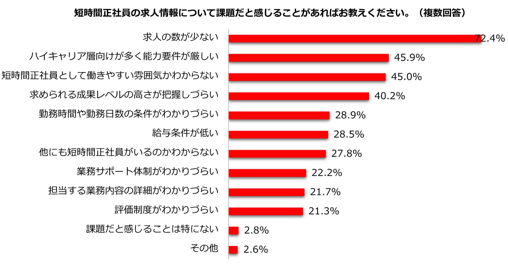 3.短時間正社員の求人情報についての課題「求人の数が少ない」72.4%