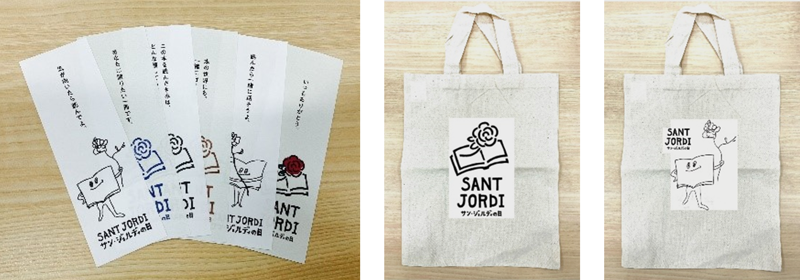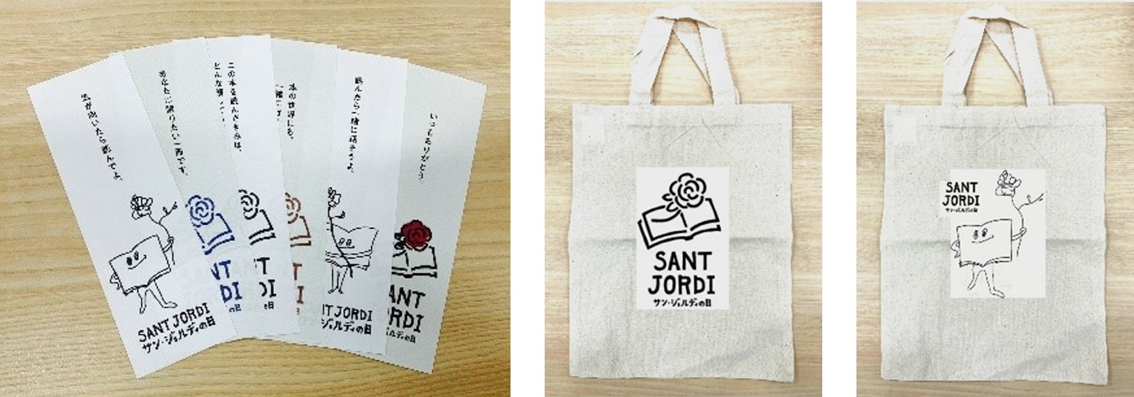 本を贈るときにメッセージを添えることができる、特製しおりの無料配布を実施します。メッセージは「いつもありがとう。」「読んだら一緒に話そうよ。」など全6種類。さらに、その場で「サン・ジョルディの日」に関するアンケートに回答すると、限定オリジナルロゴ入りトートバッグをプレゼントします。書店でドキドキしながら本を選び、大切な人へ贈ってみませんか?
