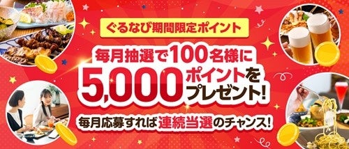 ~抽選で毎月100名にぐるなび期間限定ポイント「5,000 ポイント」をプレゼント~