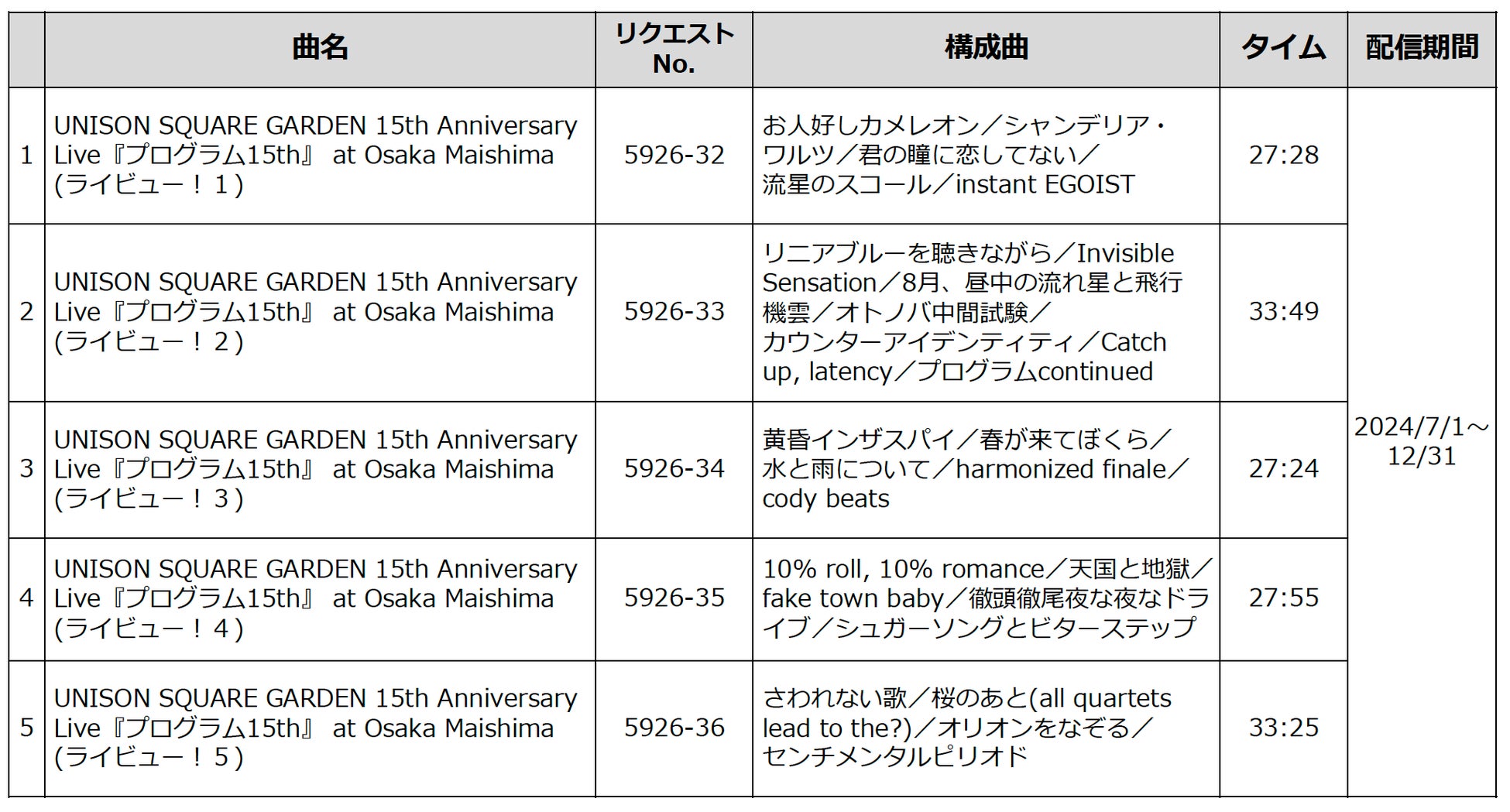 ■UNISON SQUARE GARDEN 配信曲※