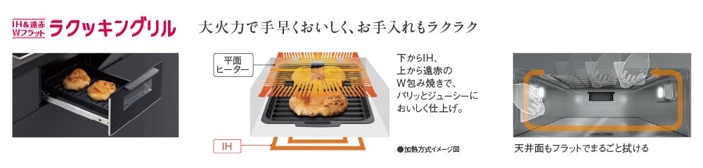 IH&遠赤 Wフラット ラクッキングリルで、自動調理もできる。庫内がフラットなのでお手入れもラクラク